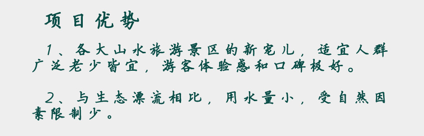 1、各大山水旅游景區(qū)的新寵兒,適宜人群廣泛老少皆宜,游客體驗感和口碑極好。